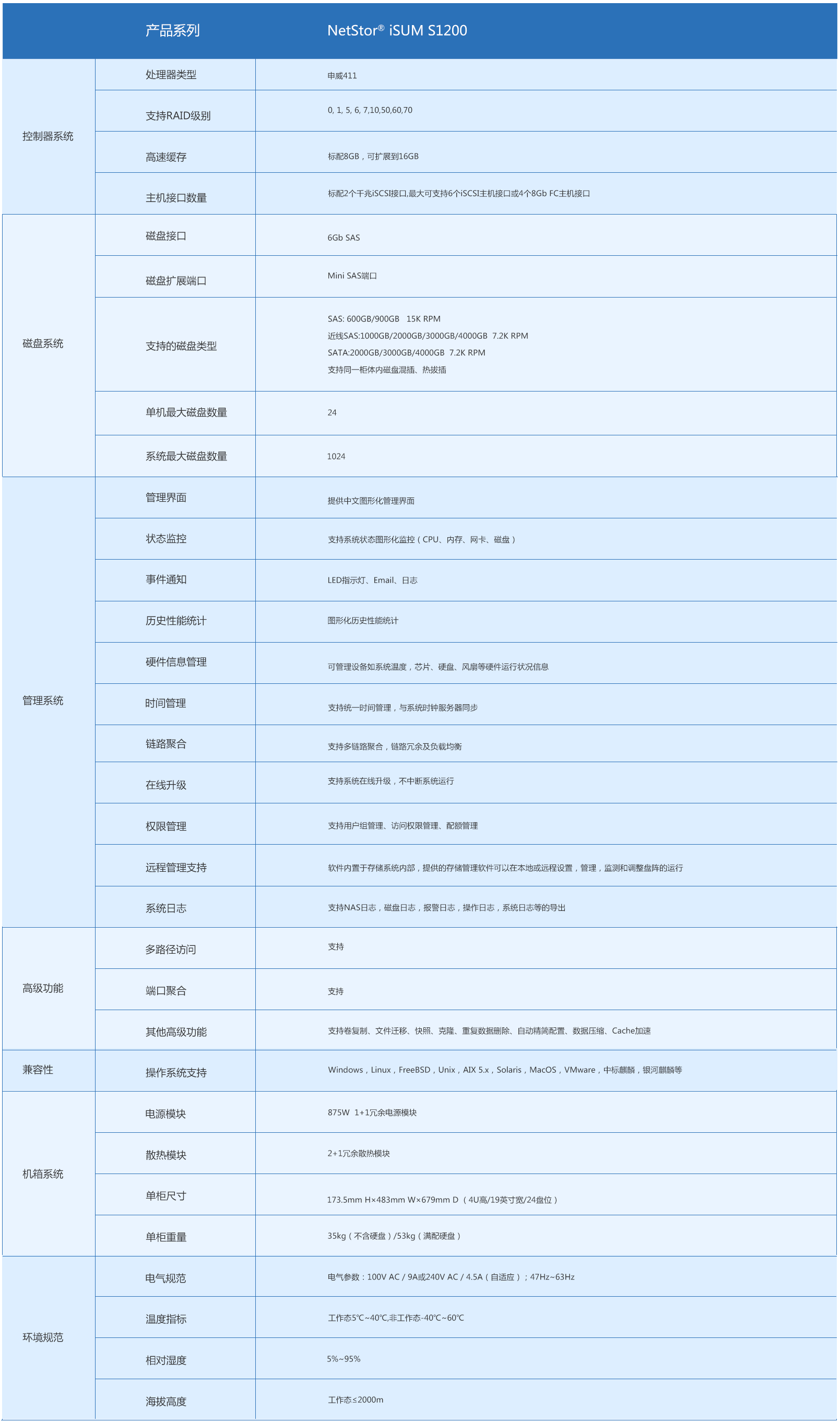 NetStor iSUM S1200系列是币游国际推出的国产自主创新统一磁盘存储系统。该系列产品关键部件全部采用国产设备,存储管理软件由币游国际自主研发,可同时支持IP-SAN、FC-SAN、NAS多种应用。它专为用户多种关键性应用而设计,是国产服务器优先选择的统一存储设备。该产品以良好的互操作性、保密性、卓越的稳定性,为政府机关等提供效能卓越、安全可靠的存储服务。