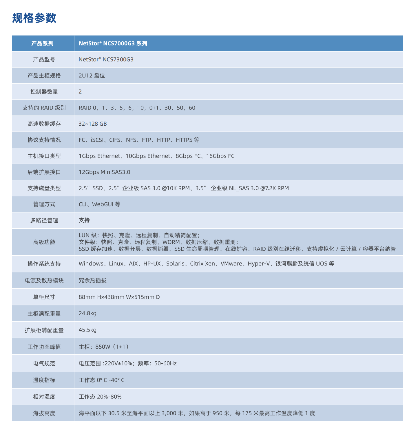 NCS7300G3 产品具有高 IOPS、高带宽的优点,支持 SAN+NAS 统一存储,关键部件全冗余设计,系统整体稳定性及可靠性已得到充分验证,搭配高效实用的各项功能,可以应对不同规模或不同类型的业务场景。可以满足政府、医疗、交通、教育、科研、制造、企业、能源、公检法司等行业对存储系统高性能、 高可靠、易管理、大容量的需求。