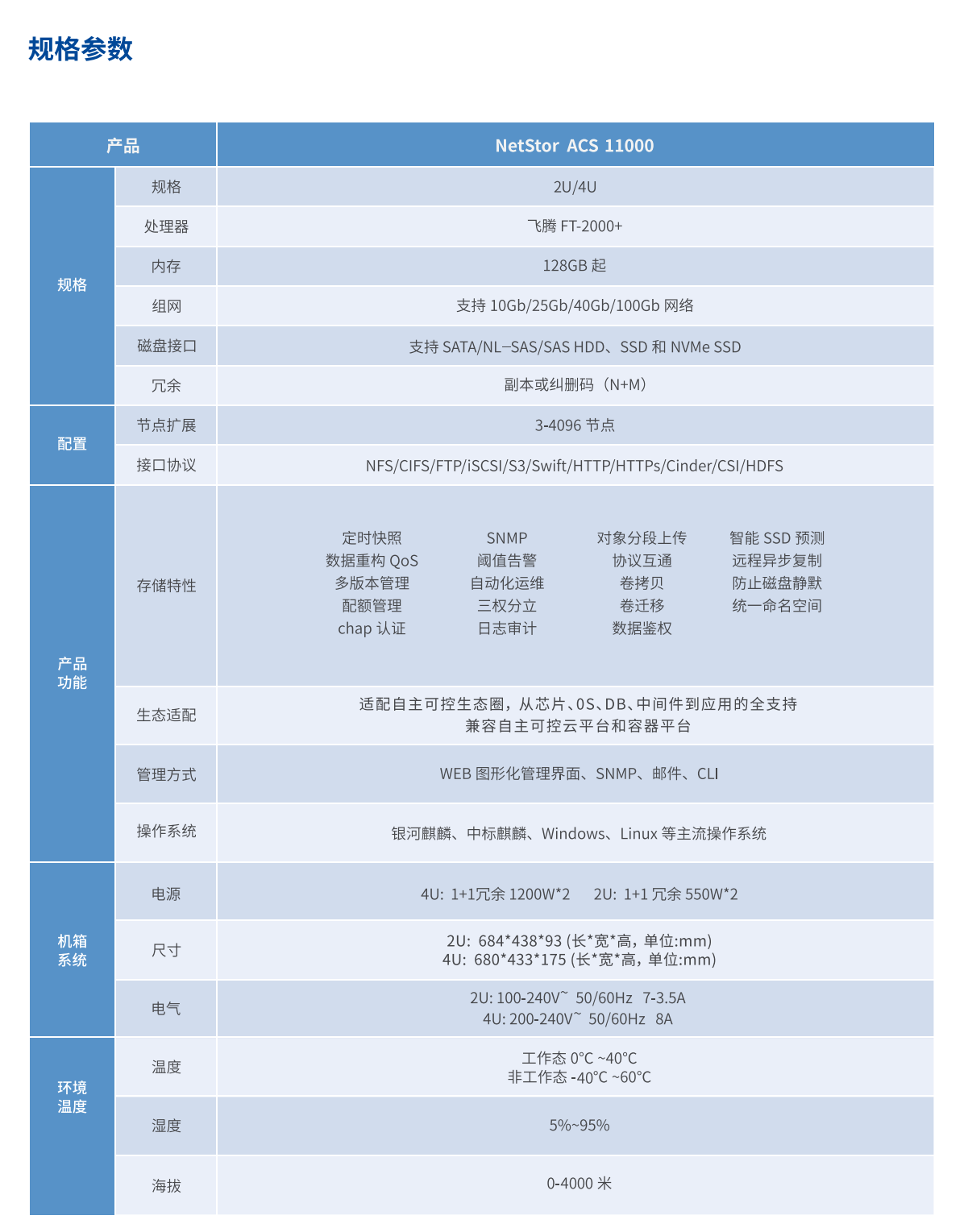 NetStor ACS 11000实现了与部件及算法、CPU、操作系统、整机、应用平台等众多信创产业内主流产品的全方位兼容适配,可更好的满足业务系统安全可靠的要求。